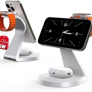 3 in 1 Charging Station for Apple Devices,Mag-Safe Charger Stand Fast Charging,Wireless Charger for iPhone 16/15/14/13/12 Series,& AirPods,& iWatch(USB-C Charger Included)