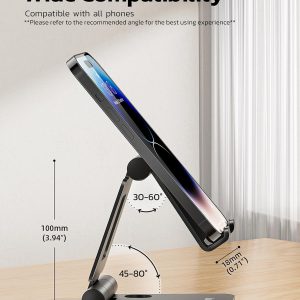 Cell Phone Stand, Angle Height Adjustable Cell Phone Holder with Silicon Pad for Desk Fully Forldable Mobile Phone Holder Compatible with All Mobile Phones, MT-6, (White)