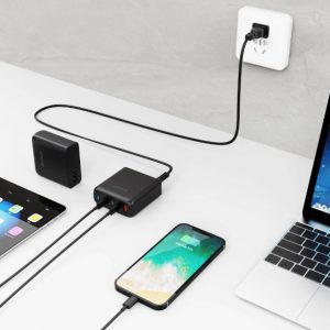 Features three Type-C ports, allowing simultaneous charging of up to three devices at optimal speeds.