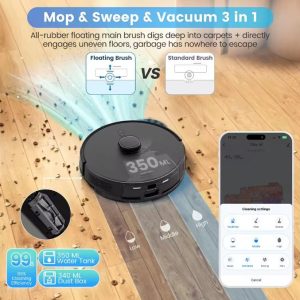 Battery Life and Auto Recharge: Long-lasting battery ensures extended cleaning sessions, with automatic return to the charging dock when battery levels are low.