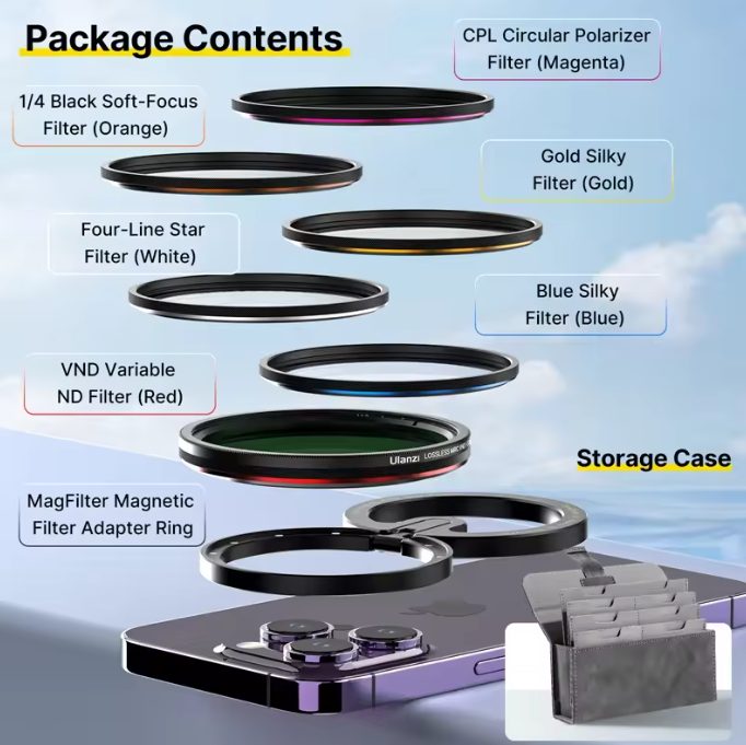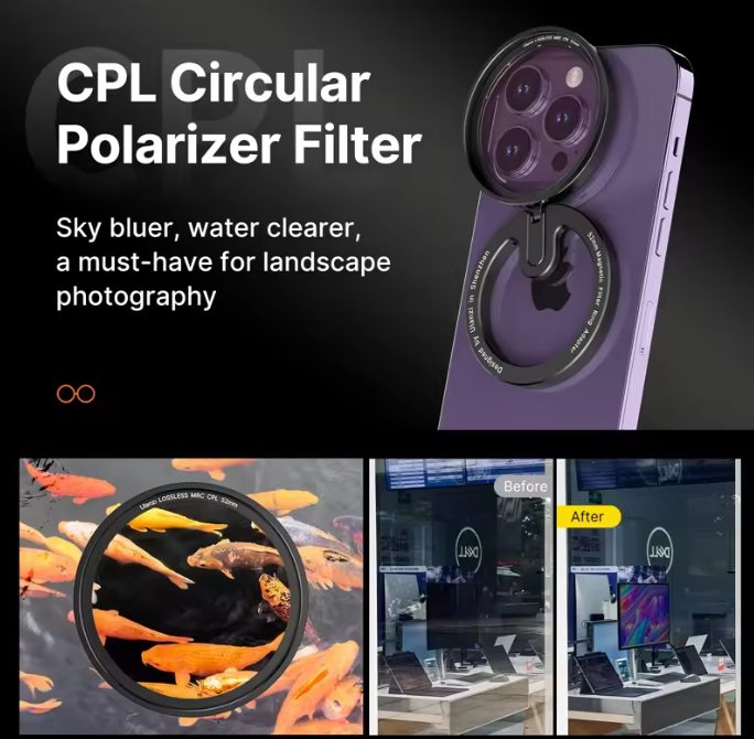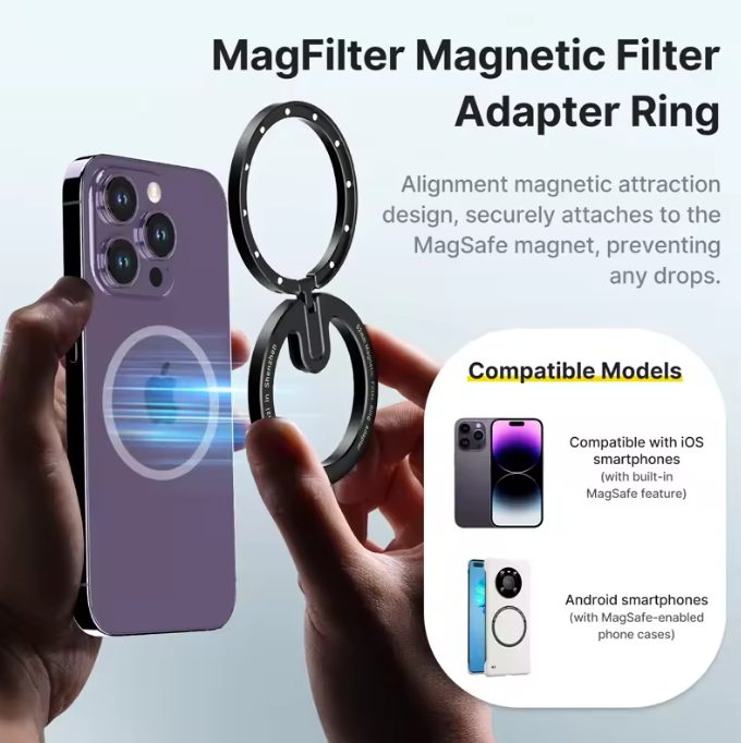 Ulanzi HP-013 Magfilter: This is a magnetic filter adapter designed for cameras, typically used for attaching circular polarizers (CPL) or neutral density (ND) filters to cameras with fixed lenses or limited filter thread space. It allows easy attachment and detachment of filters using a magnetic mounting system, which can be particularly useful for compact cameras or those without traditional filter threads.